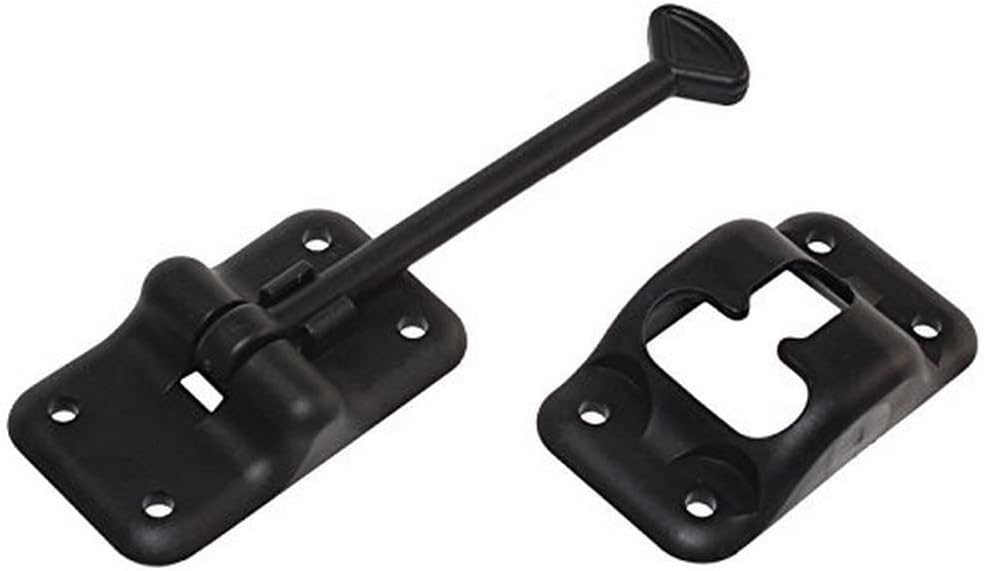 Durable plastic T-style door holder with screws. Keeps RV doors open reliably. Easy install—backed by lifetime warranty.