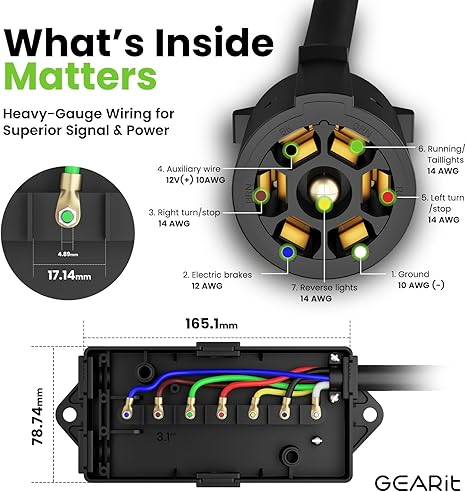 Weatherproof 7-way blade connector with junction box. Easy wiring for trailers, RVs, and campers.
